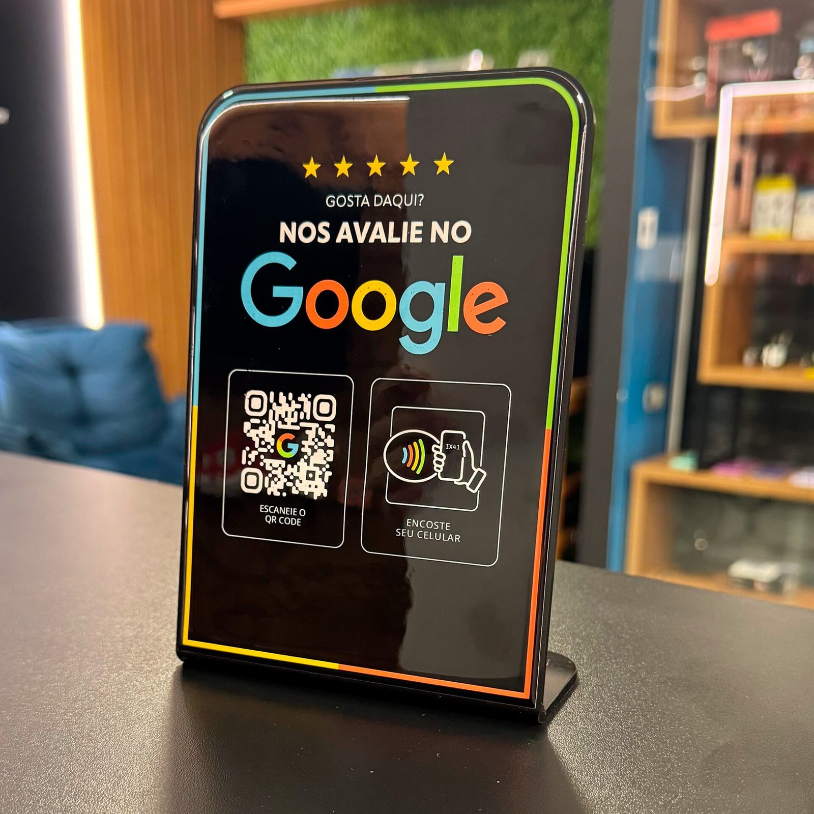 Sim, totalmente permitido. A placa apenas facilita o acesso à página oficial de avaliação da sua empresa no Google. Ela não viola nenhuma regra, pois o cliente ainda precisa tomar a decisão de deixar o feedback, usando a própria conta Google.